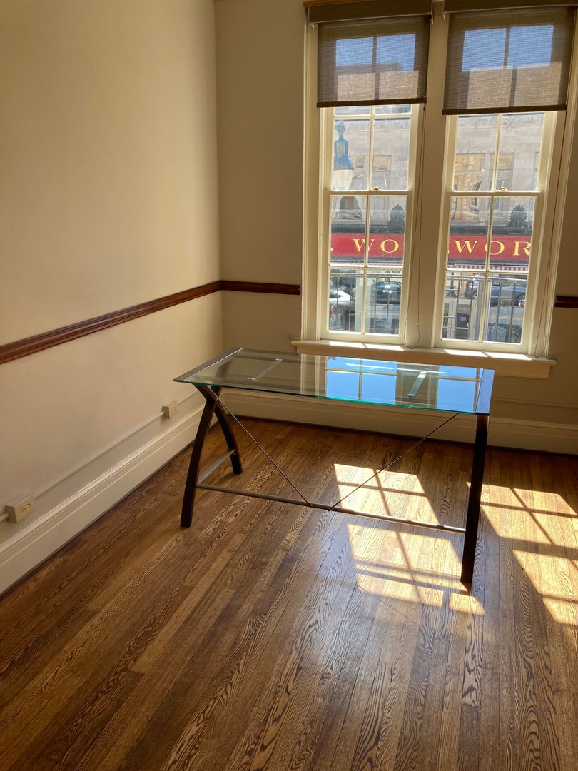Located in the heart of downtown Greensboro at 121 South Elm Street, this 150-square-foot second-floor office offers a rare blend of charm, convenience, and value. Featuring beautiful hardwood floors and large windows that bring in natural light, this space is ideal for professionals seeking a quiet and inspiring work environment.